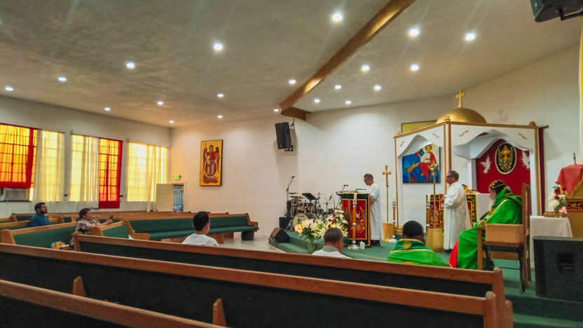 Finalmente, en un ambiente festivo, el arzobispo presidió la celebración de la divina liturgia, contando con la participación activa de toda la asamblea.
