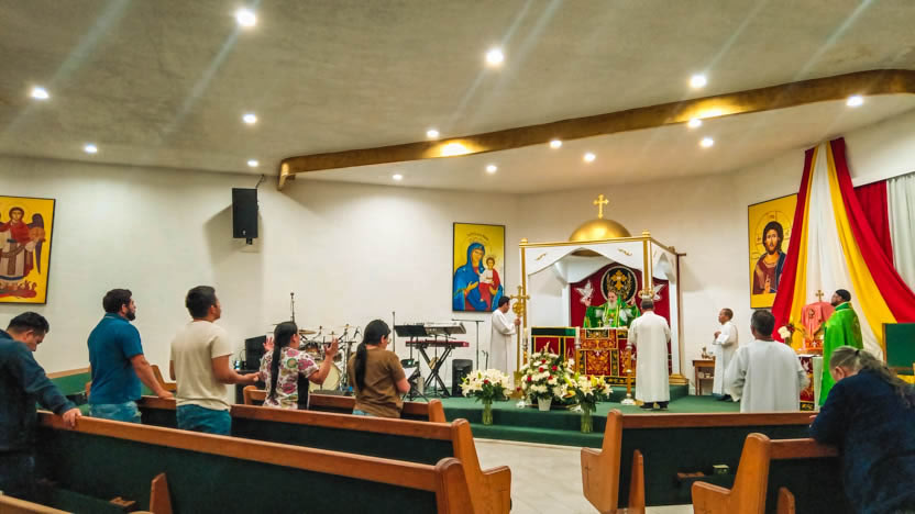 La visita pastoral al Centro Pastoral San Pablo Apóstol culminó con la celebración de la divina liturgia, que el arzobispo presidió con los hermanos de la comunidad La Voz del Espíritu Santo.