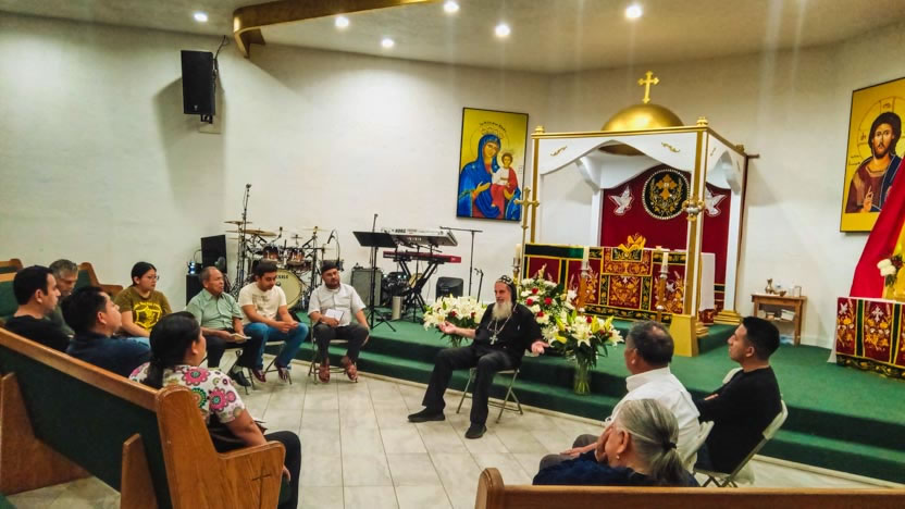 La visita a la comunidad La Esperanza culminó con la celebración de la Divina Liturgia, la cual fue presidida por el arzobispo y contó con la activa participación de los hermanos.