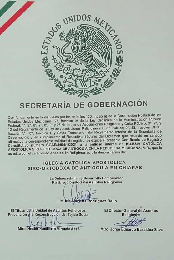 Finalmente, el 13 de junio fue la entrega de reconocimientos a nuevas Asociaciones Religiosas y, entre estas, estuvo la de nuestra Iglesia en Chiapas.