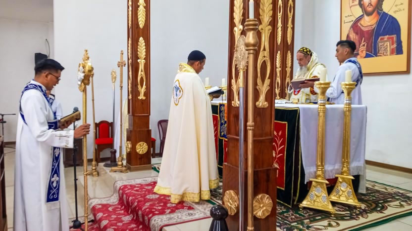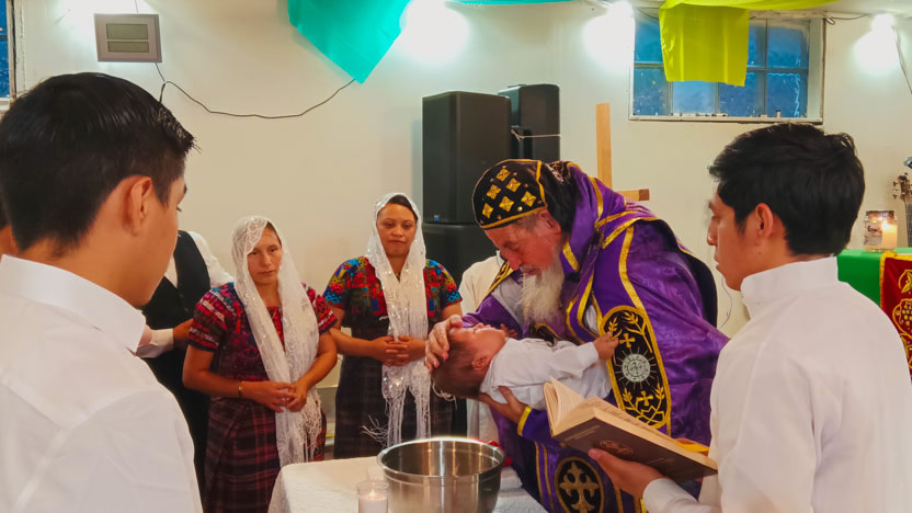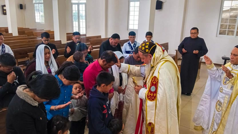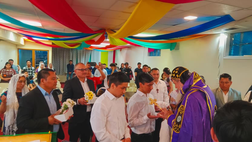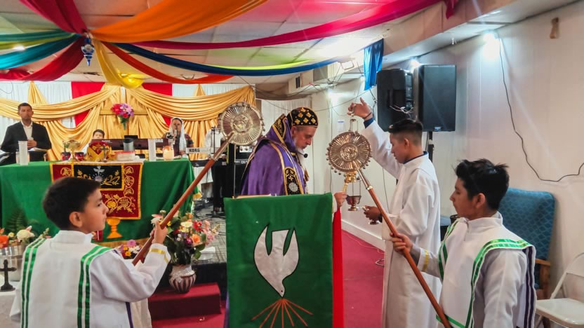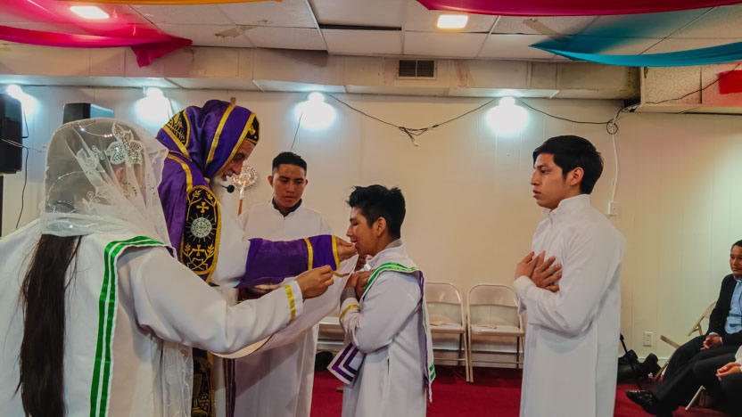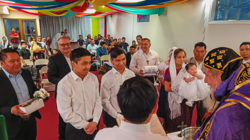 Después de la homilía, el arzobispo administró los sacramentos del bautismo, la crismación y la primera comunión a dos niños, cuyos padres son miembros de la comunidad.