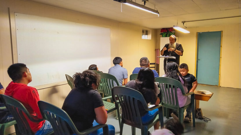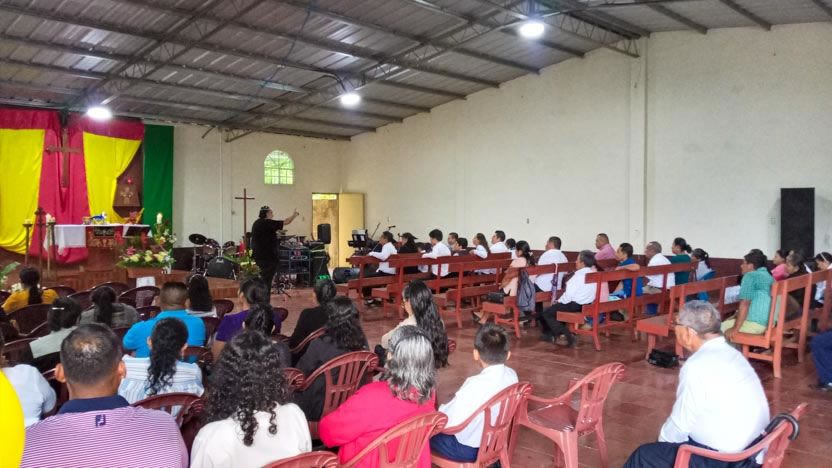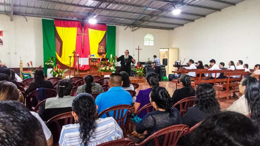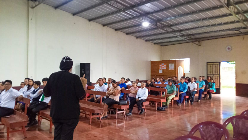 La visita comenzó con un tiempo para dar formación al pueblo de Dios, la cual incluyó explicar acerca del proceso seguido para la redacción de la Sagrada Escritura. |