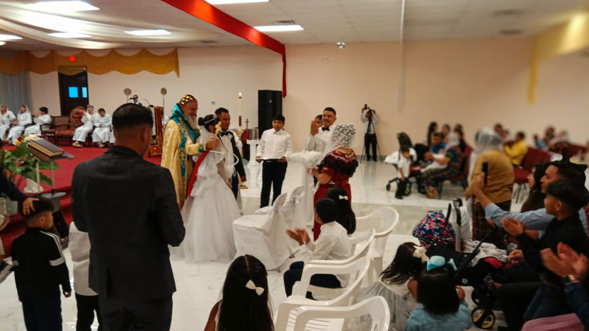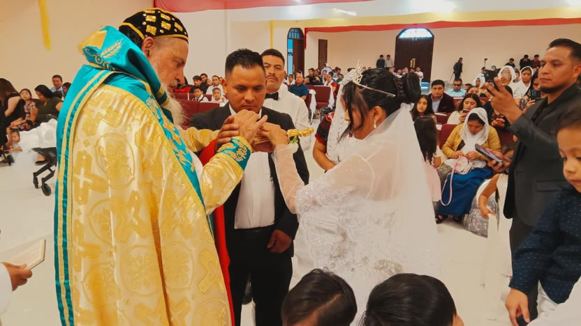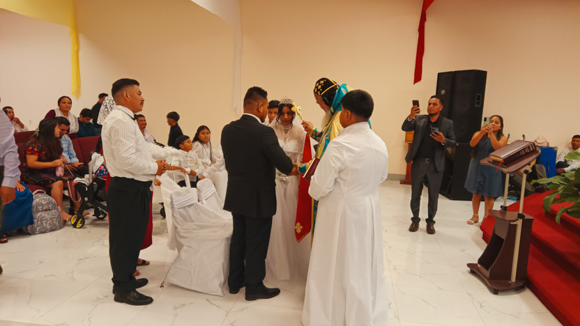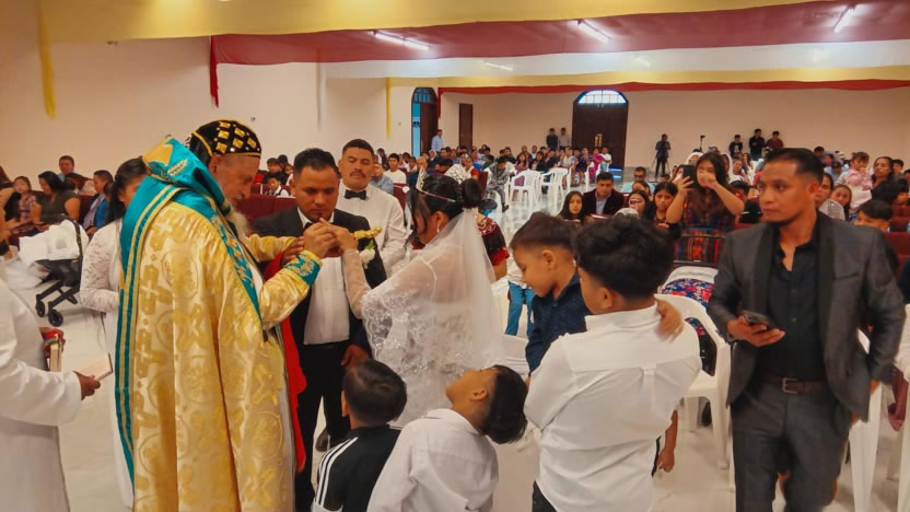 Un momento muy importante de la celebración lo constituyó la administración del sacramento del matrimonio a Tomás y Eulalia, miembros activos de la comunidad.
