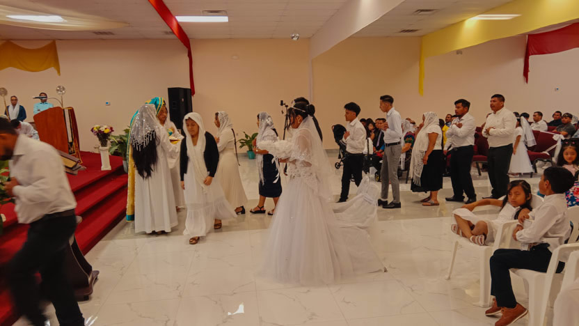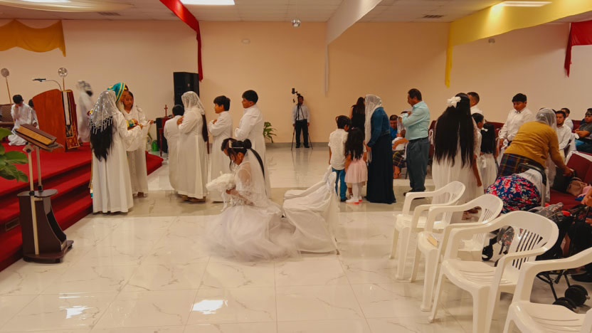 Seguidamente, se administraron los sacramentos del bautismo, la crismación y la primera comunión a tres niñas, hijitas de miembros de la comunidad. Se trata de Evelyn, Yazely y Sheily.