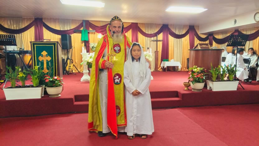 El hijo del hermano Luis, líder de la comunidad Elvys, fue presentado para recibir la confirmación de la crismación y el envío misionero.