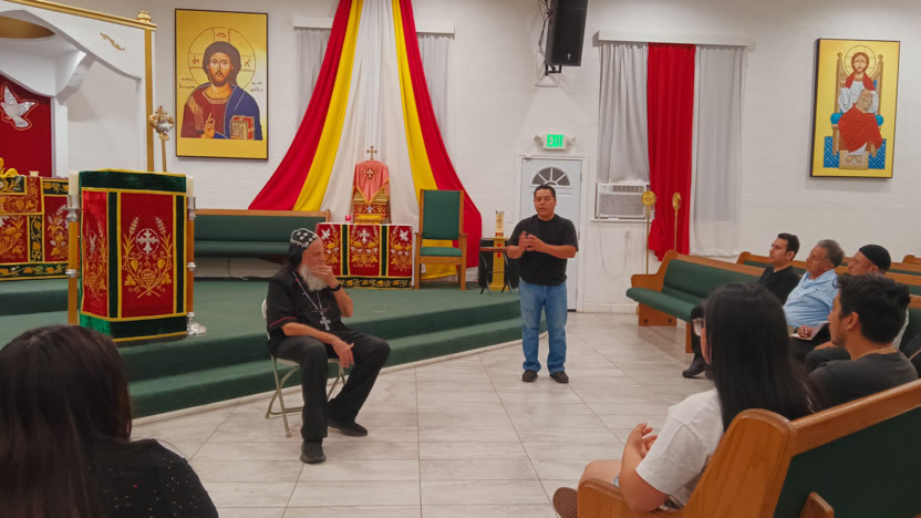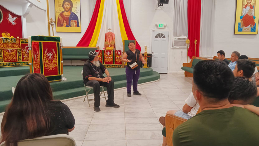 El viernes 9 de agosto, al final de la mañana, el arzobispo llegó hasta la Catedral de San Efrén en Burbank, California, para hacer una visita a Mor Clemis Kaplan, arzobispo del occidente de los Estados Unidos.