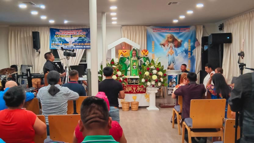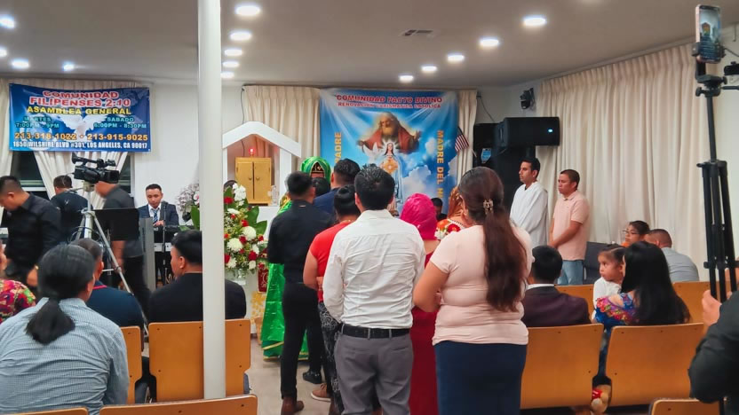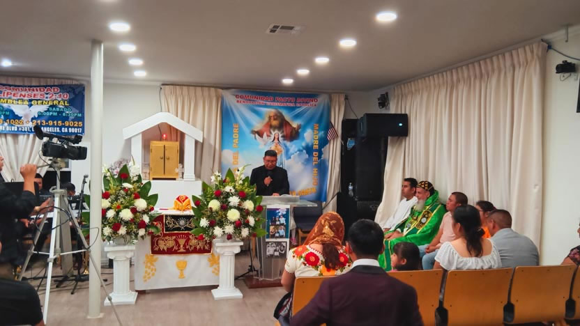Ya entrada la noche, el arzobispo llegó hasta la sede de la comunidad Pacto Divino, también ubicada en el centro histórico de la ciudad de Los Ángeles.
