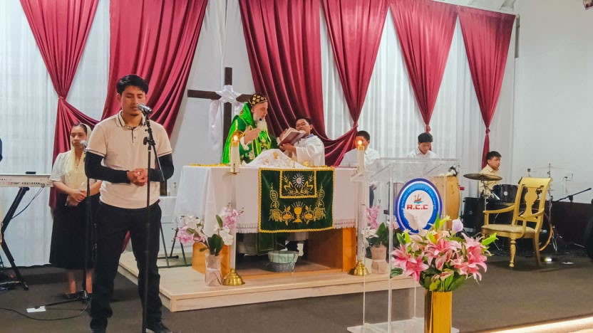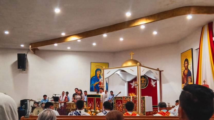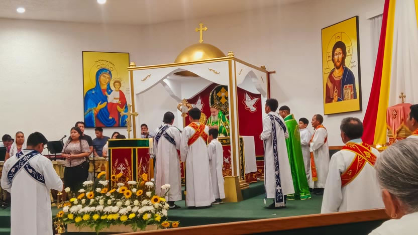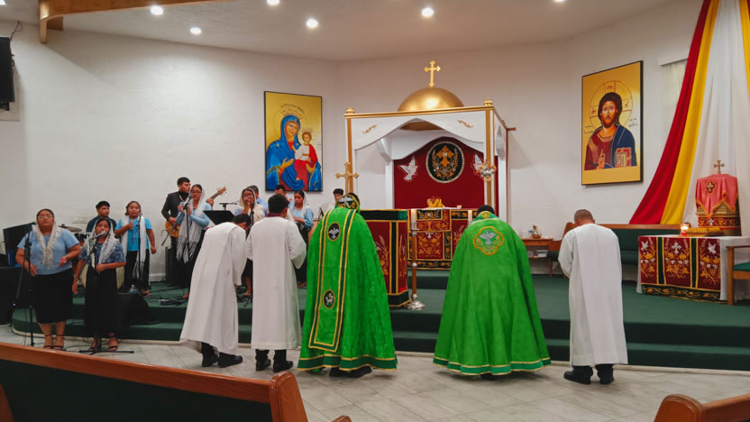 La visita concluyó con la celebración de la divina liturgia, la cual fue presidida por el arzobispo. Los hermanos Edgar, Jaqueline, Bryan y Diana, de la sede parroquia le acompañaron.