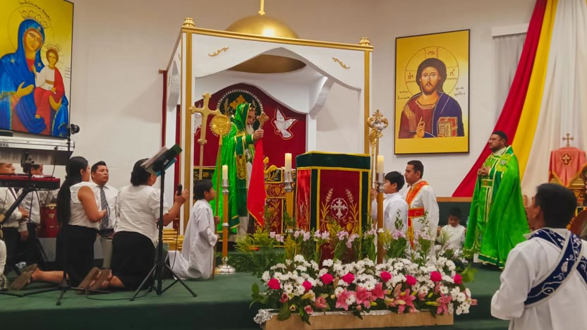 El domingo 8 de septiembre, despues de un tiempo de alabanza, se comenzó con las celebraciones litúrgicas en la parroquia.