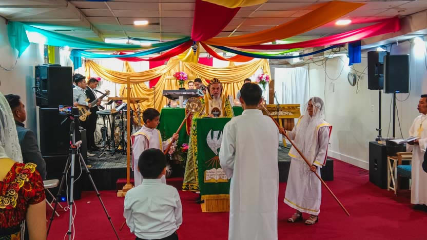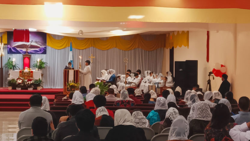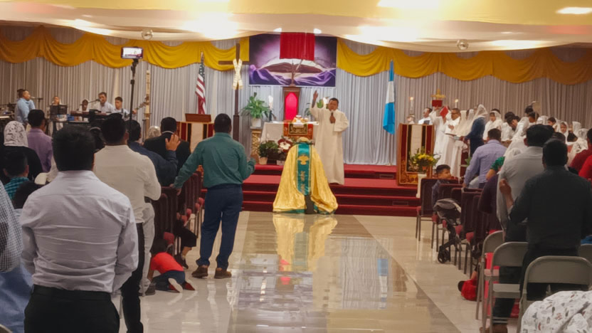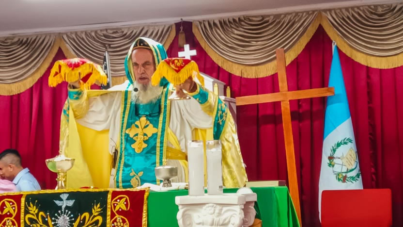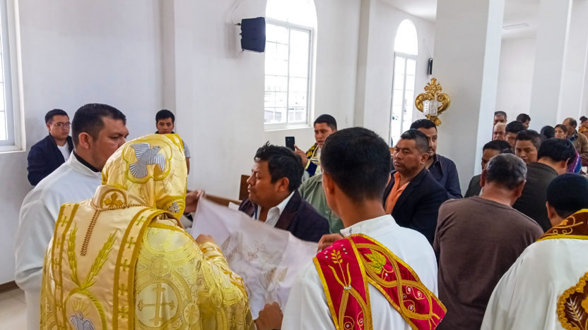 | 25: PRESENTACIÓN DE DONES AL ARZOBISPO, CATEDRAL MARÍA AUXILIO DE LOS CRISTIANOS, SANTIAGO SACATEPÉQUEZ. |