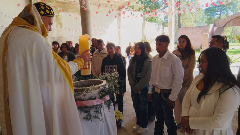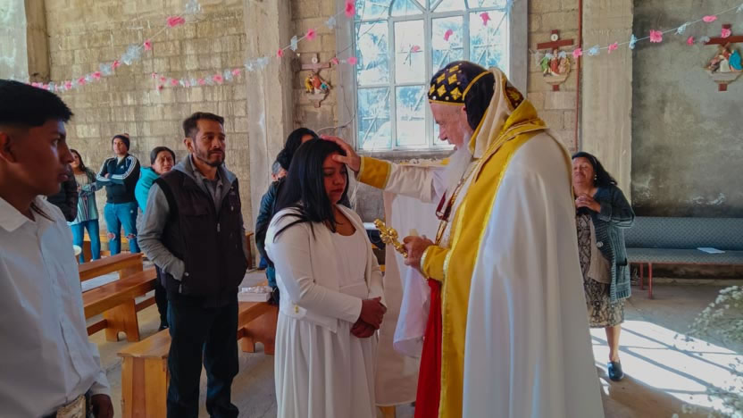El padre Henry, preparó con esmero a un grupo de hermanos, tanto de Coyotepec como de Huehuetoca, para recibir el sacramento de la crismación.