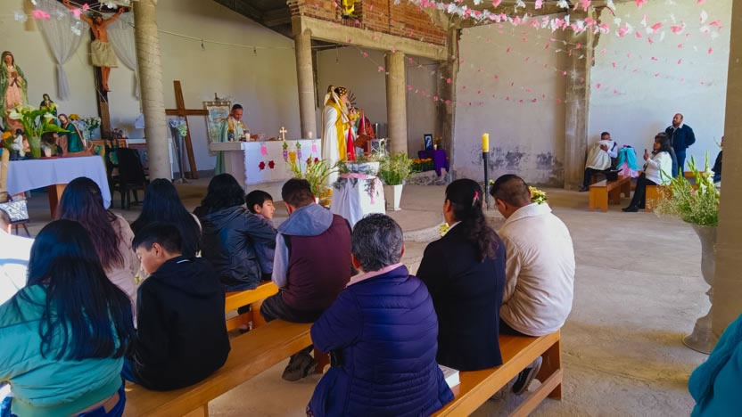 | 22: DIVINA LITURGIA CON FIELES DE LA VICARÍA DE OAXACA, SANTA MARÍA COYOTEPEC, OAXACA. |