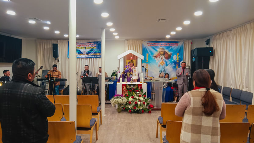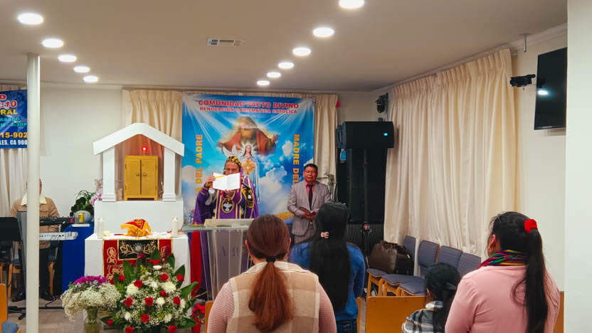 El mismo día 4, ya entrada la noche, el arzobispo llegó hasta la comunidad Pacto Divino, ubicada en el centro de la ciudad de Los Ángeles, para hacer la visita.