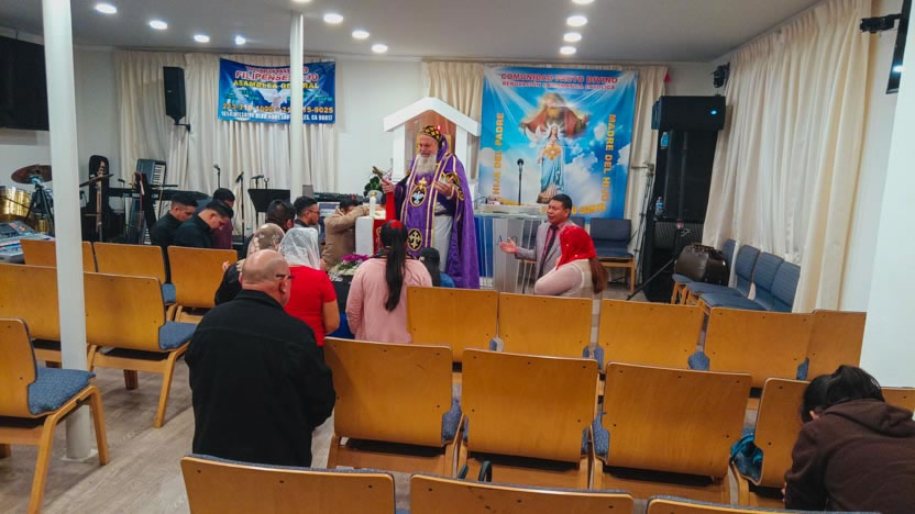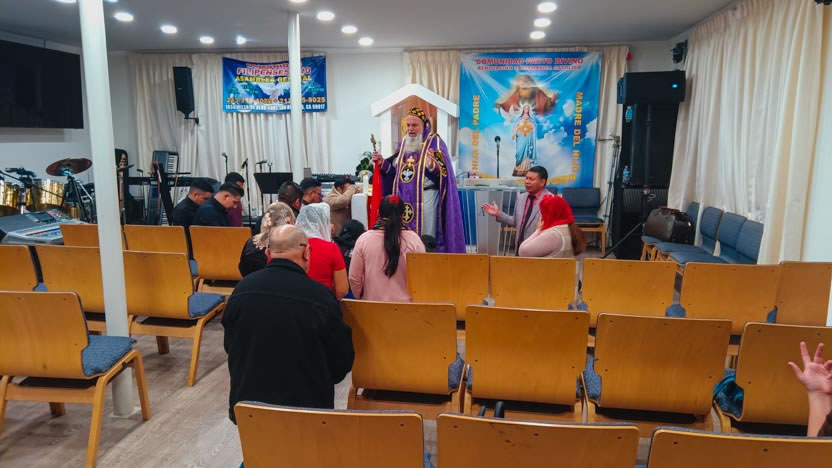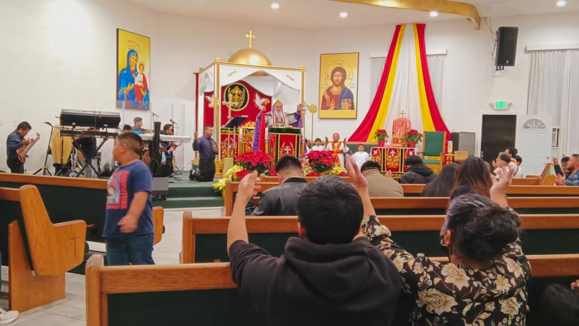Seguidamente, el arzobispo presidió la celebración de la divina liturgia, para los miembros de la comunidad Ministerio el Pescador de la ciudad de Los Ángeles.