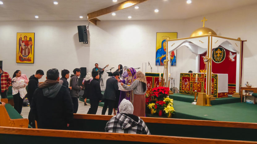 La visita a la comunidad de Cristo Rey culminó con la celebración de la divina liturgia, la cual fue presidida por el arzobispo y en la que los fieles participaron con mucha devoción.