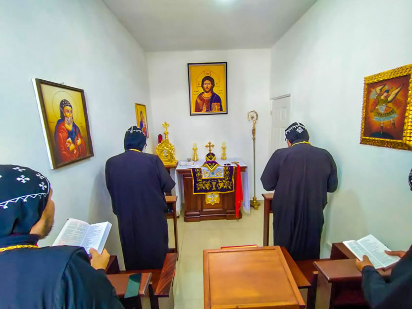 19: ORACIÓN DEL OFICIO DIVINO CON EL CONSEJO EPISCOPAL DEL ARZOBISPADO, CENTRO ARQUIDIOCESANO, SANTIAGO. |