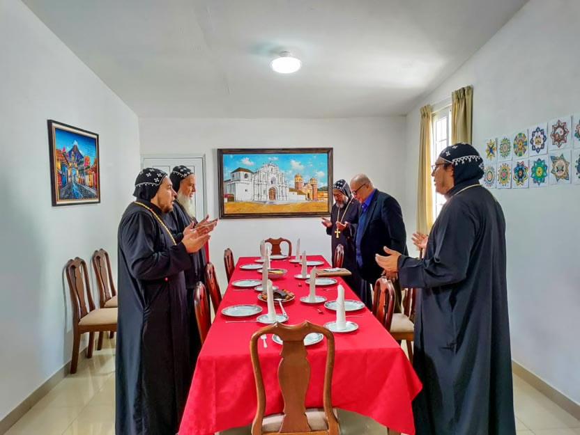 Seguidamente, el Consejo Episcopal Arquidiocesano tuvo una reunión de trabajo con el señor Embajador de Egipto en Guatemala, para conocerse y dialogar sobre la cooperación entre la iglesia copta y la Arquidiócesis de Centroamérica.