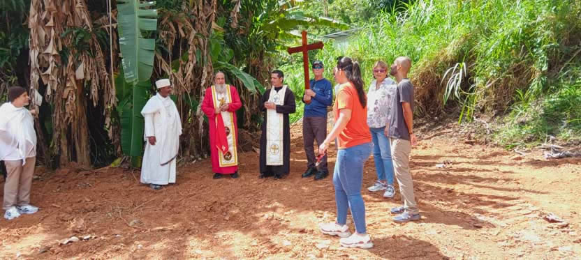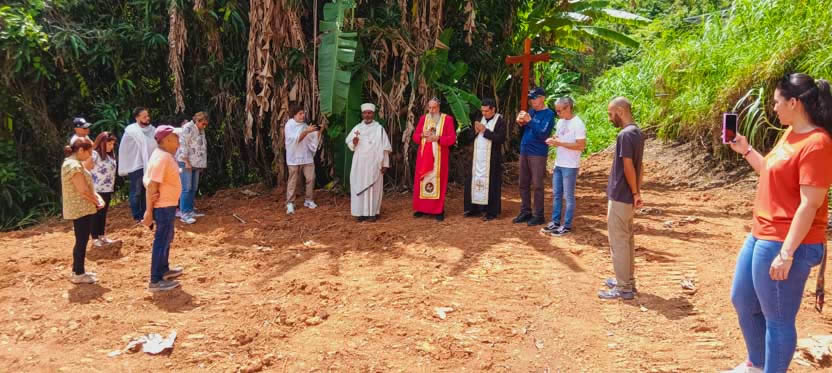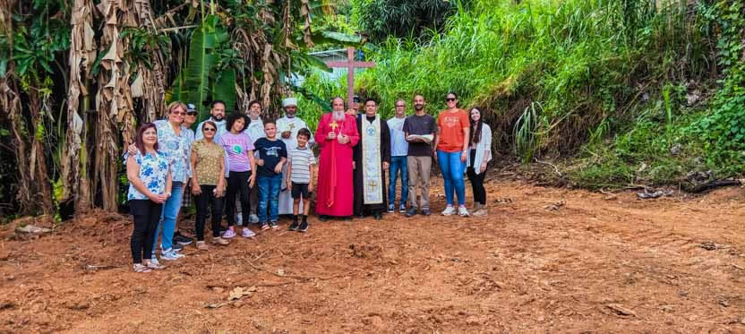 El sábado 26, la visita comenzó con las oraciones de bendición del nuevo predio adquirido recientemente, para construir la sede de la parroquia y de la misión. |