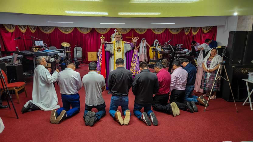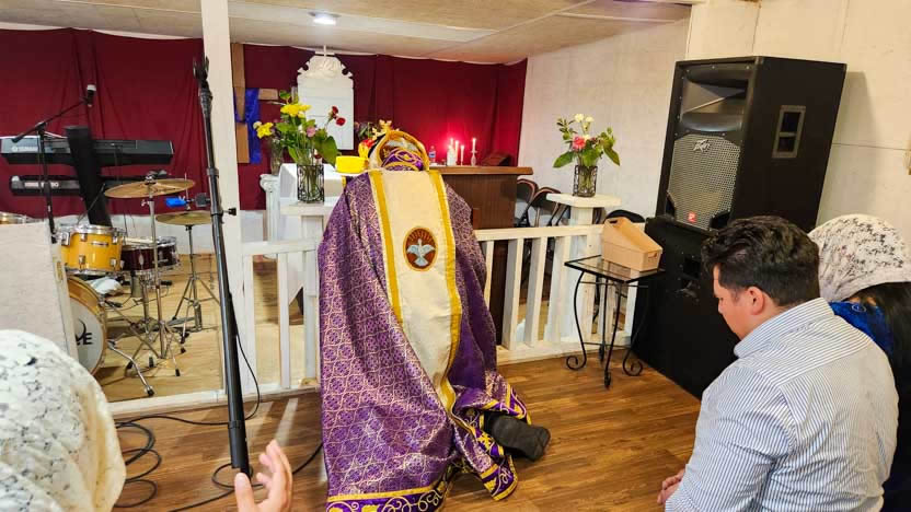 La visita a la comunidad Cristo Rey culminó con la celebración de la divina liturgia. El arzobispo presidió la celebración, correspondiente al quiento domingo de cuaresma.