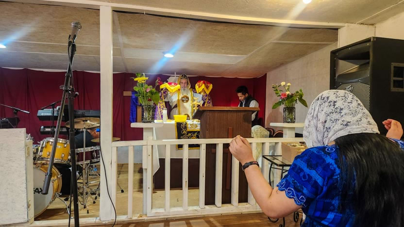 La visita a la comunidad La Voz del Espíritu Santo culminó con la celebración de la divina liturgia, la cual fue presidida por el arzobispo y activamente participada por los fieles.
