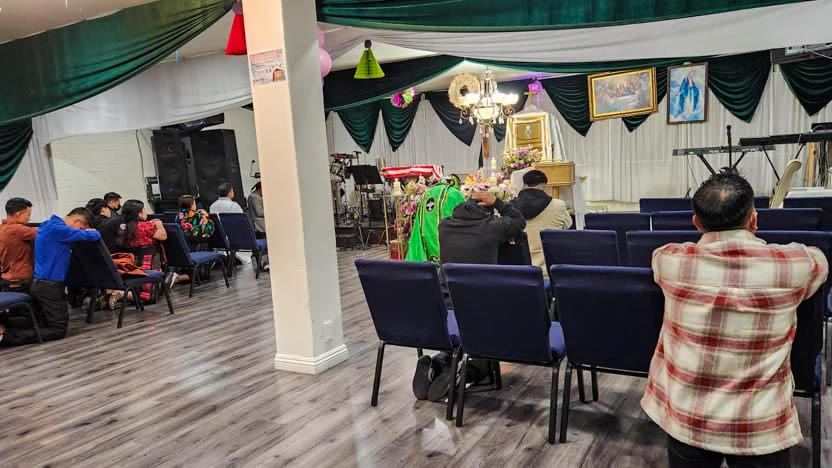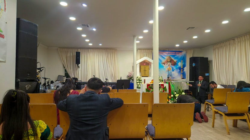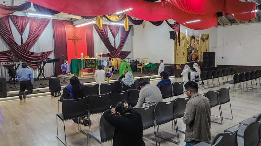 Ya bien entrada la noche, el arzobispo llegó a la comunidad Pacto Divino, igualmente ubicada en el centro de la ciudad de Los Ángeles. La comunidad en el último mes, ha sufrido debido a la persecución contra migrantes.